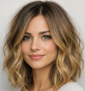 (Lob): Ein schulterlanger Bob, der leicht gewellt ist.